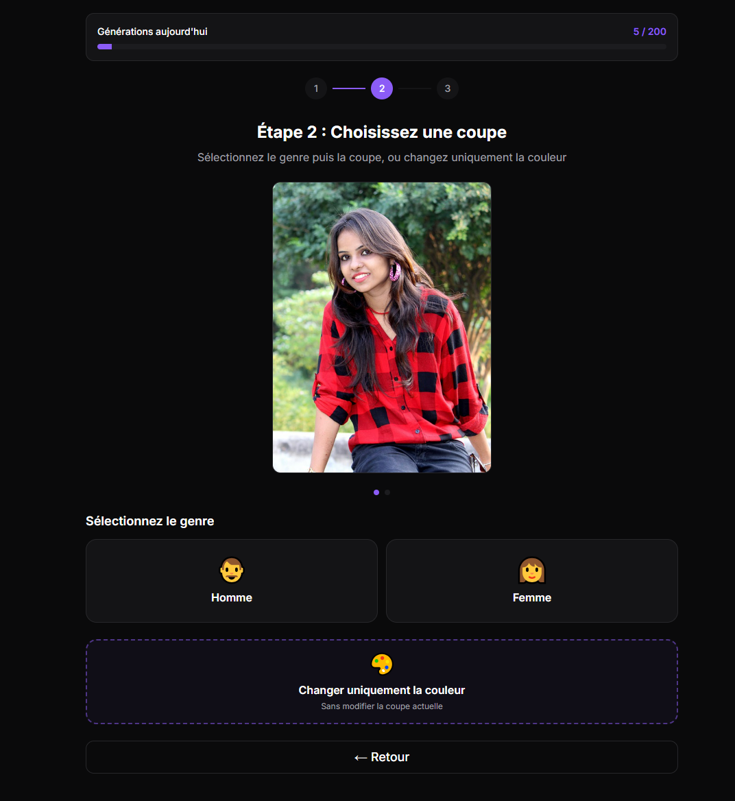 IA de pointe qui préserve le visage et génère des coupes naturelles.